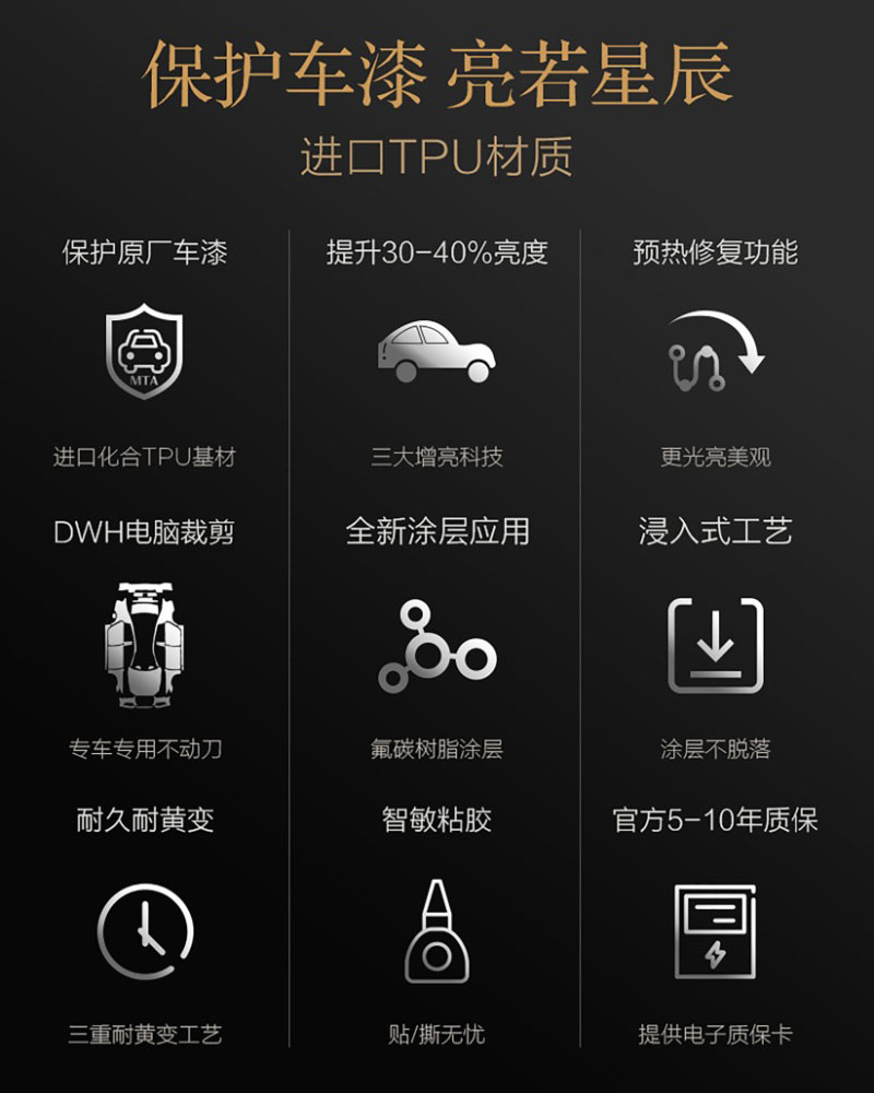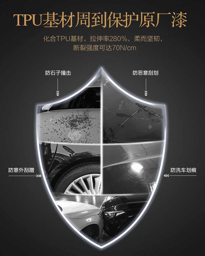 琥珀冰钻漆透明保护膜经过不断创新,综合了目前漆面保护膜的特性,经过无数次的破坏性实验推出漆面保护膜新品系列,产品不仅具有优秀的抗污能力,而且划痕常温下快速自动修复,达到目前行业较高水平。琥珀冰钻漆透明保护膜继续坚持创新、全力以赴保证一如既往的卓越品质,为客户提供一流的产品和服务!